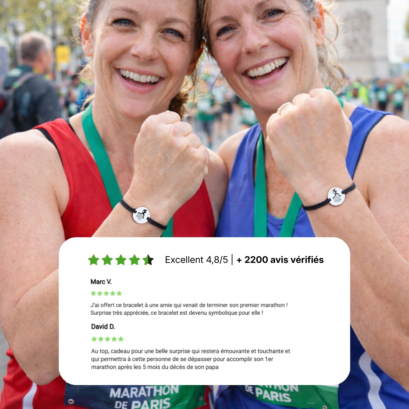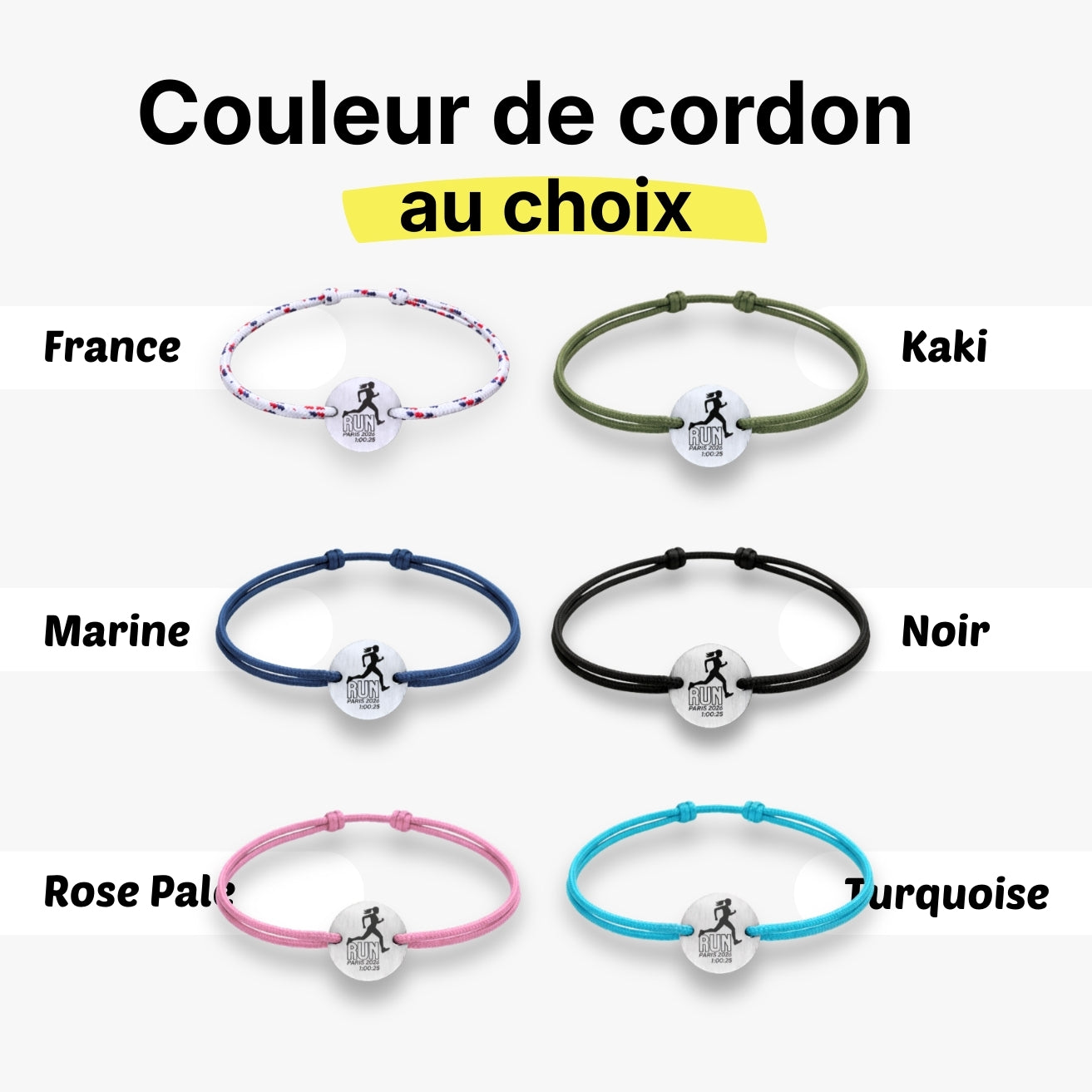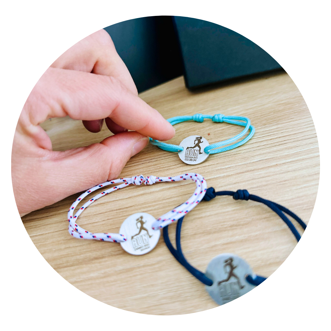 Chaque bracelet devient ainsi un souvenir unique de votre ligne d’arrivée.