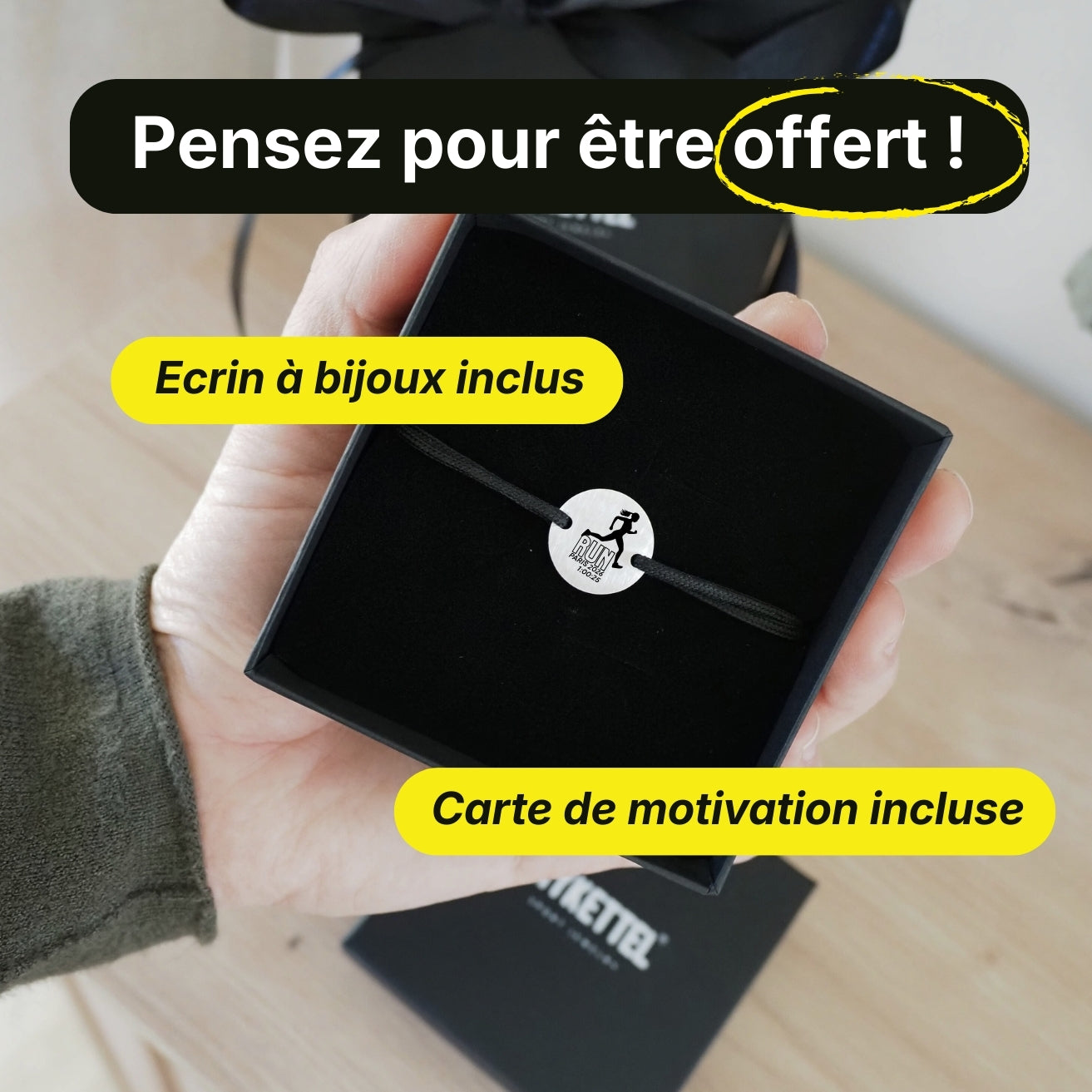 Ce bracelet est un moyen simple et élégant de garder votre exploit à votre poignet et de vous rappeler chaque jour que vous êtes allé jusqu’au bout.